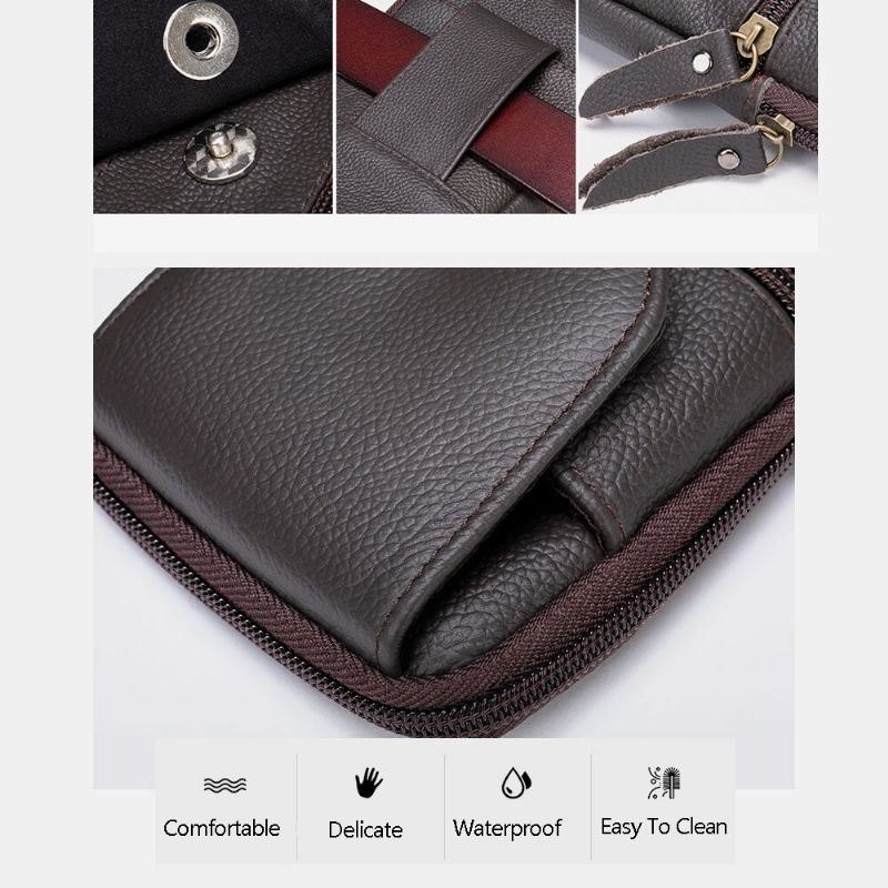 Herre Ekte Skinn Multifunksjonell Vintage 6.3 Tommers Telefonveske Kortveske Kuskinn Midjeveske