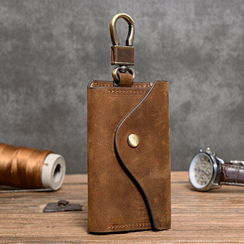 Herre Ekte Skinn Multifunksjonsnøkkelveske Retro Uformelt Kortholder Pengeklips Lommebøker