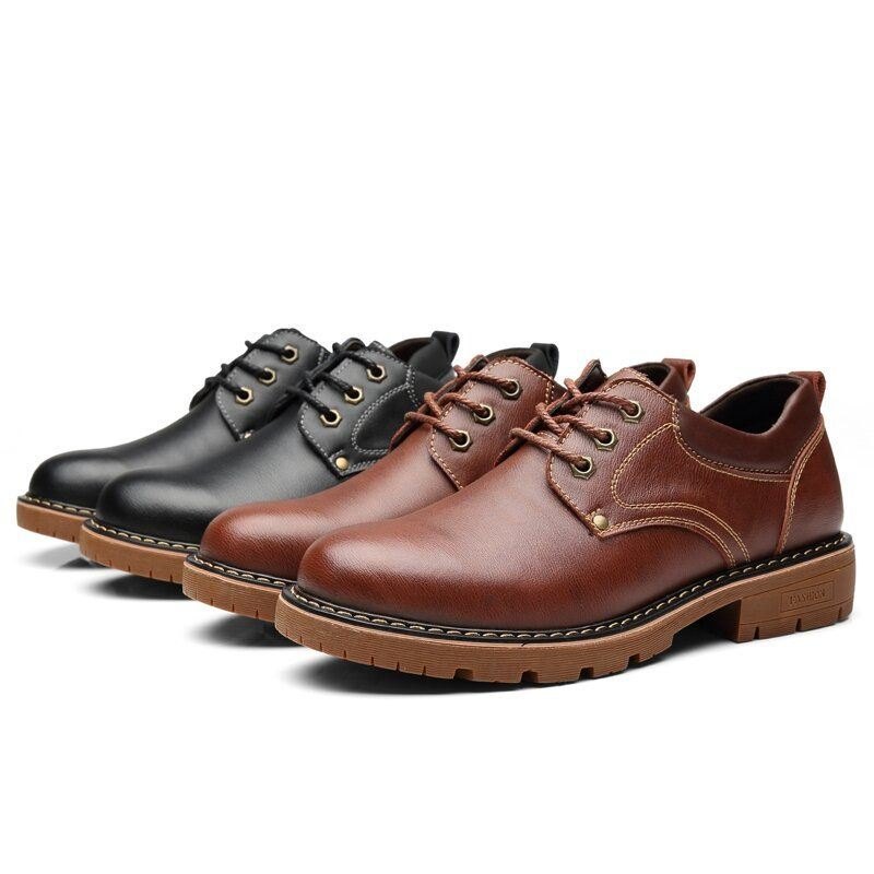 Herre Ekte Skinn Pustende Myk Tykk Såle Snøring Klassiske Uformelle Martin-støvler