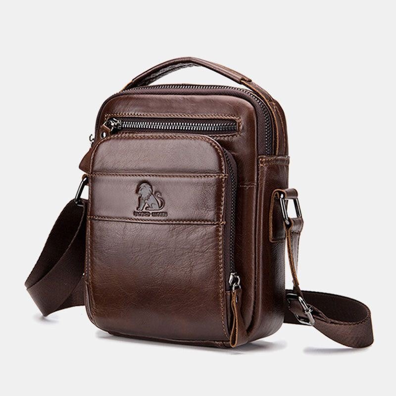 Herre Ekte Skinn Retro Business Casual Ensfarget Skinn Kuskinn Skulderveske Crossbody Veske