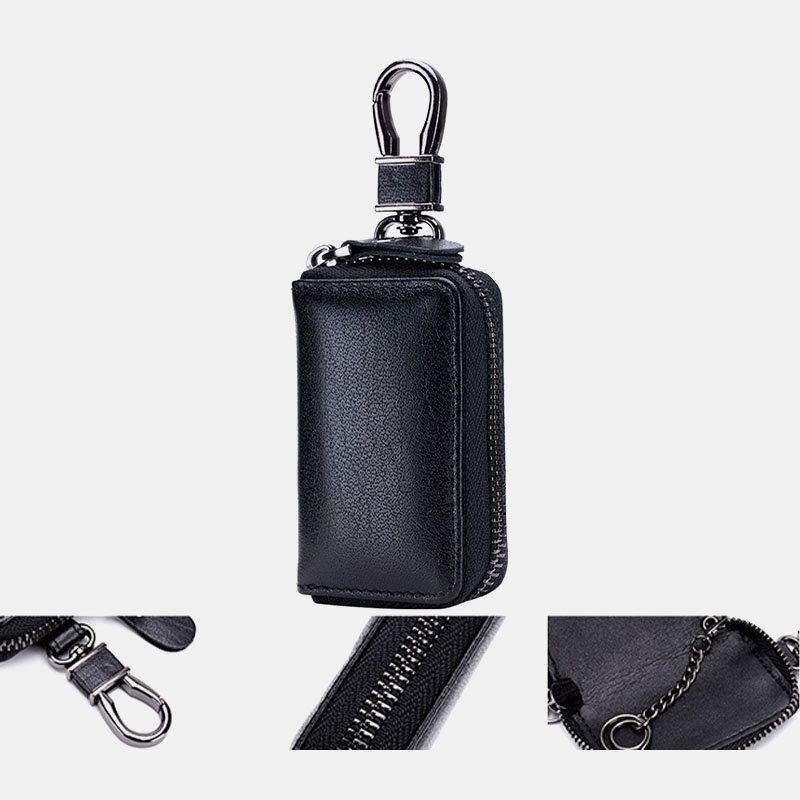 Herre Ekte Skinn Retro Mini Nøkkelveske Veske Large Capcity Mote Bilnøkkel Nøkkelring Lommebok