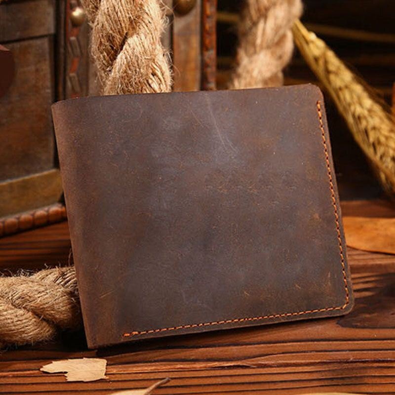 Herre Ekte Skinn Retro Pengeklemme Sammenleggbar Kortholder Lommebok Kort Lommebok