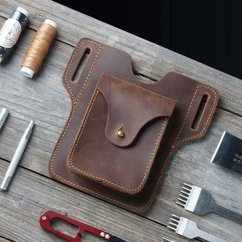 Herre Ekte Skinn Retro Solid Lett Å Bære Utendørs Sport Løping 7.2 Tommers Telefon Oppbevaringsveske Midje Bag Med Belteløkke
