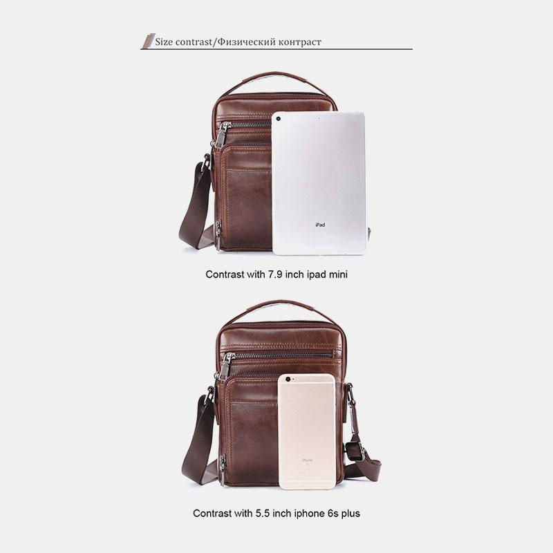 Herre Ekte Skinn Skulder Baq Crossbody Bag Med Stor Kapasitet