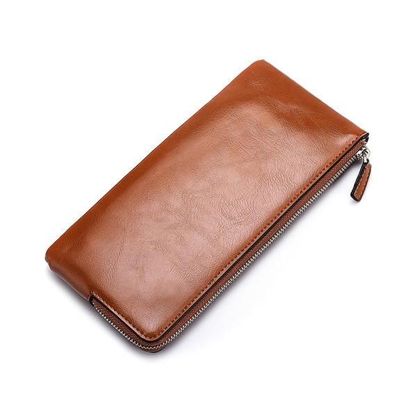Herre Ekte Skinn Slank Multifunksjon Lang Lommebok Kort Hol