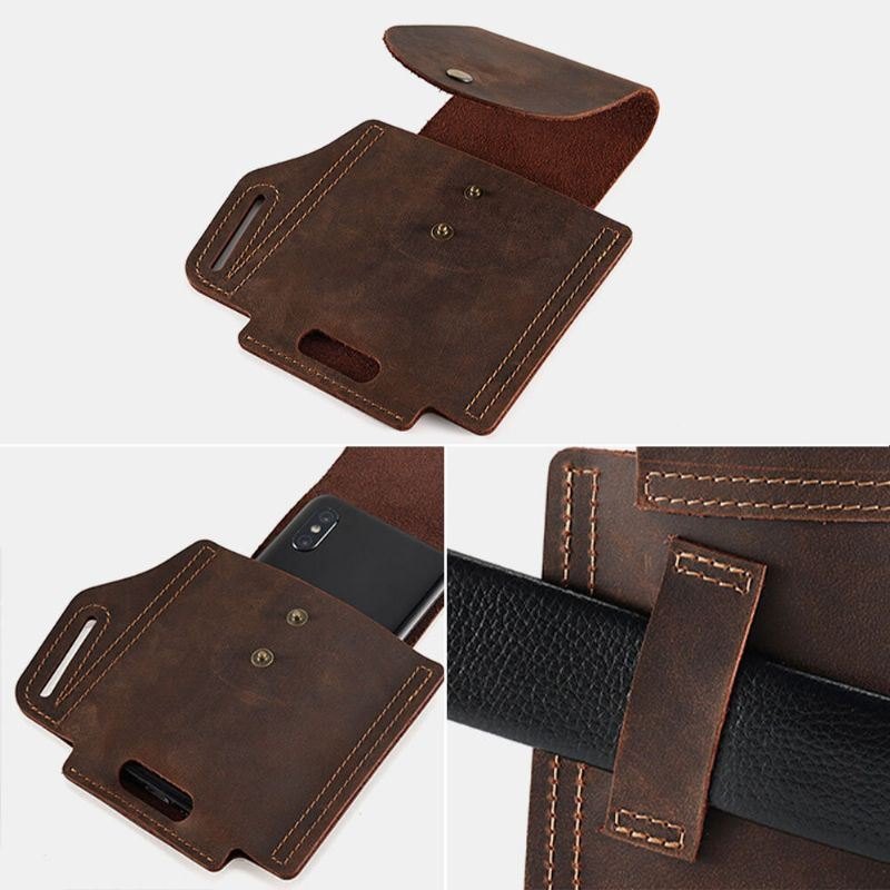 Herre Ekte Skinn Slitasjebestandig Utendørs Sport 6.5 Tommers Telefonveske Retrodeksel Hasp Midjeveske Belteveske