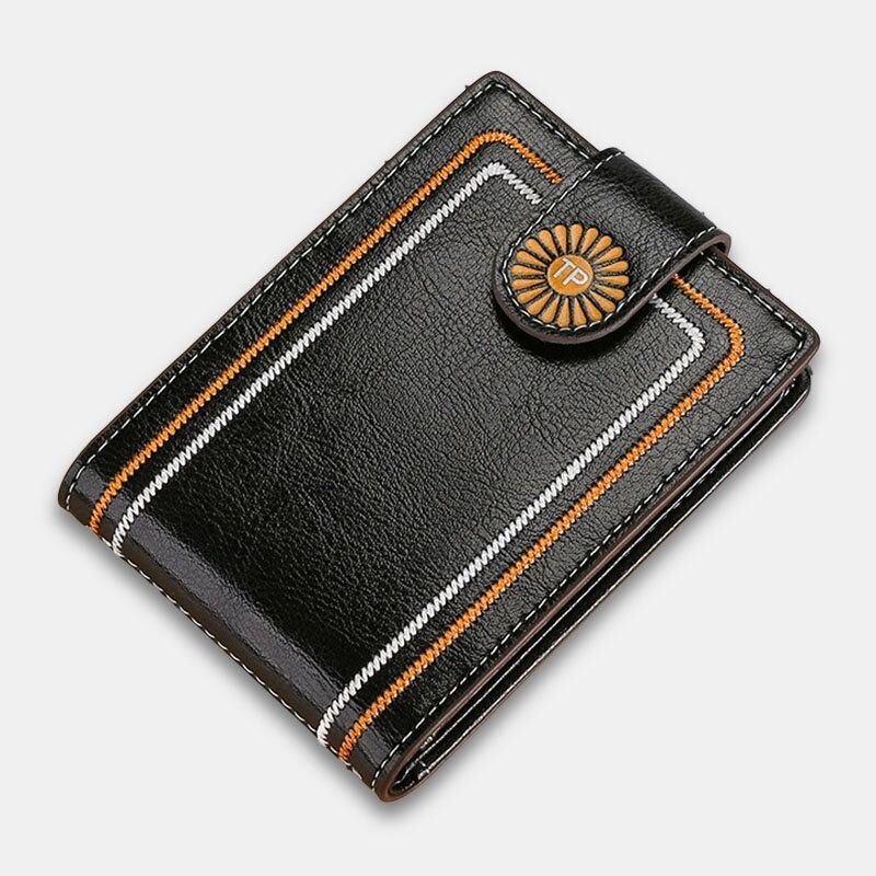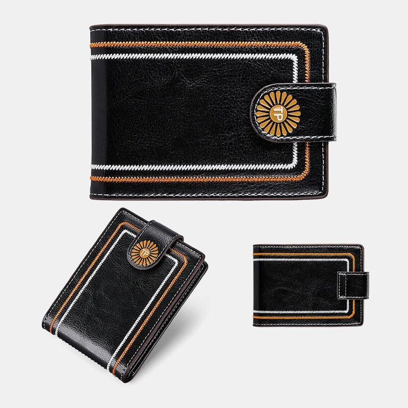 Herre Ekte Skinn Tusenfryd Mønster Hasp Multifunksjonssertifikat Veske Kortholder Myntpung Pengeklips Kuskinnlommebok
