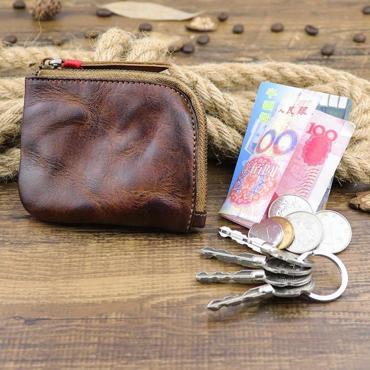 Herre Ekte Skinn Vinatge Casual Zipper Cash Lommebok