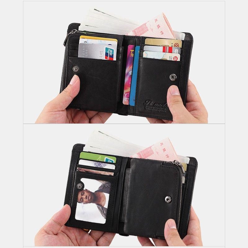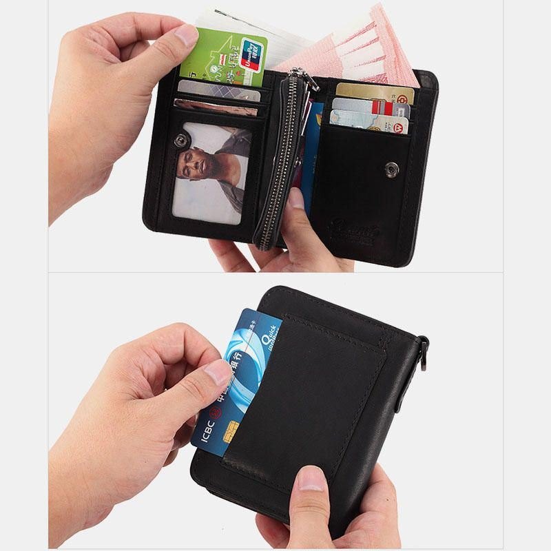 Herre Ekte Skinn Vintage Blokkerende Glidelås Mynt Lommebok Kortholder