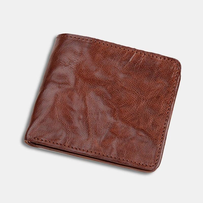 Herre Ekte Skinn Vintage Business Vegetabilsk Garvet Kuskinn Slitasjebestandig Bifold Kort Pengeklips Myntlommebok