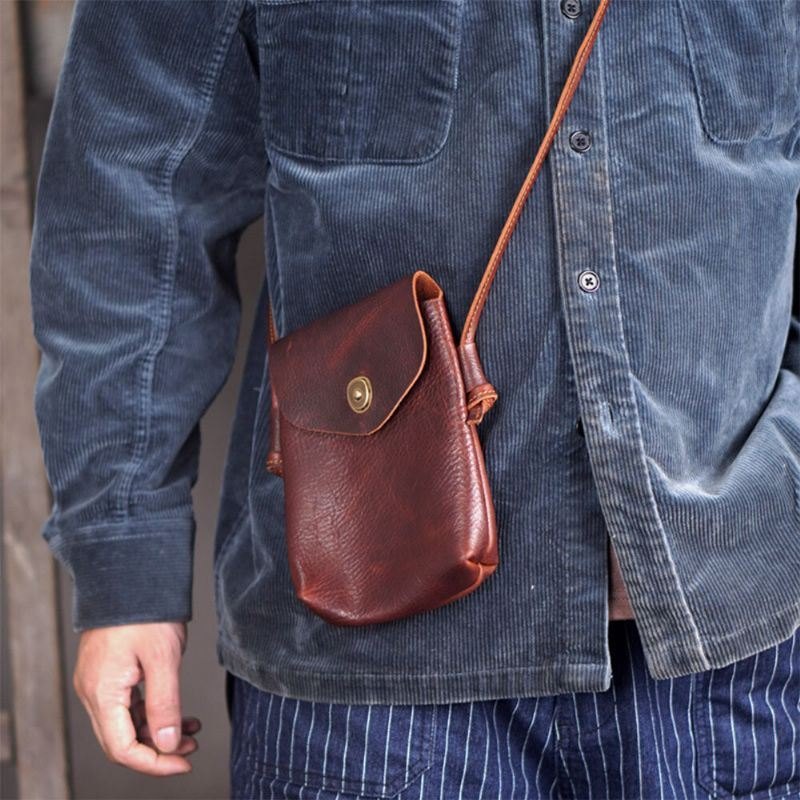 Herre Ekte Skinnhasp 6.5 Tommers Telefonveske Bærbar Vanntett Crossbody Bag Skulderveske