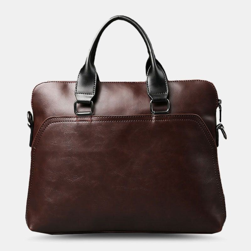 Herre Faux Leather Business Ensfarget Bærbar Håndveske Casual Koffert