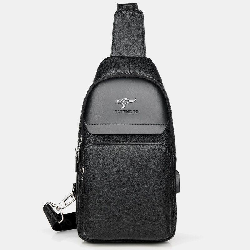 Herre Faux Leather Fashion Brystveske Skulderveske Crossbody Bag Med Usb-ladeport