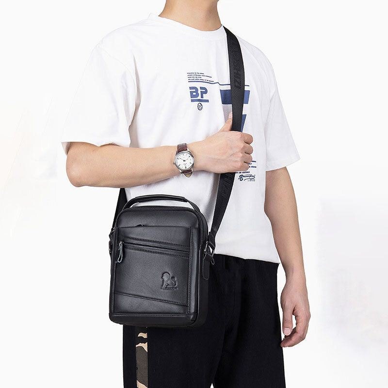 Herre Førstelags Kuskinn Anti-tyveri Crossbody-vesker Multifunksjonell Slitebestandig Messenger Bag-veske Med Stor Kapasitet