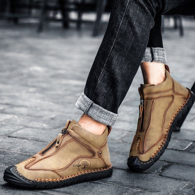 Herre Front Glidelås Håndsøm Mikrofiber Lær Ankelstøvler