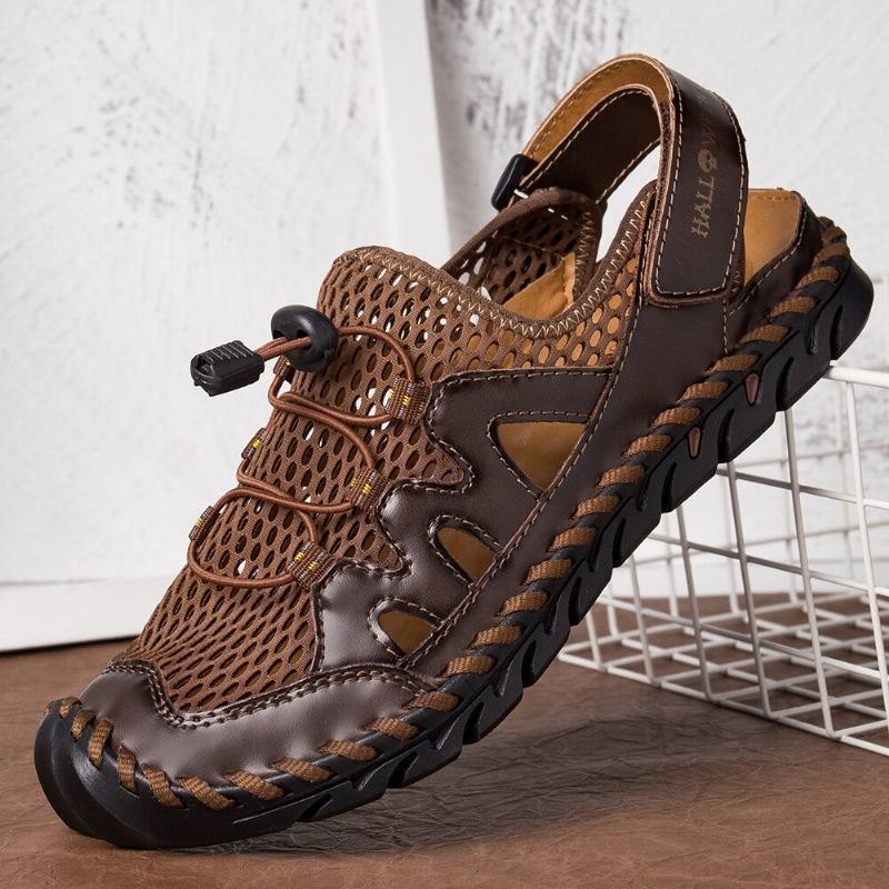 Herre Halloween Skull Håndsøm Mesh Lær Krokløkke Sandaler