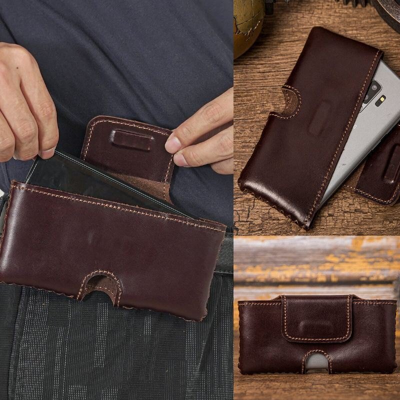Herre Håndlaget Belte I Ekte Skinn 6.3 Tommers Telefonveske Ensfarget Daglig Uformelt Belteveske Midjeveske