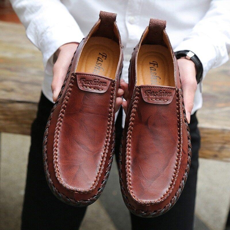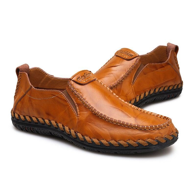 Herre Håndsøm Sfot-skinn Sklisikker Såle Behagelig Slip-on Uformelle Kjøresko