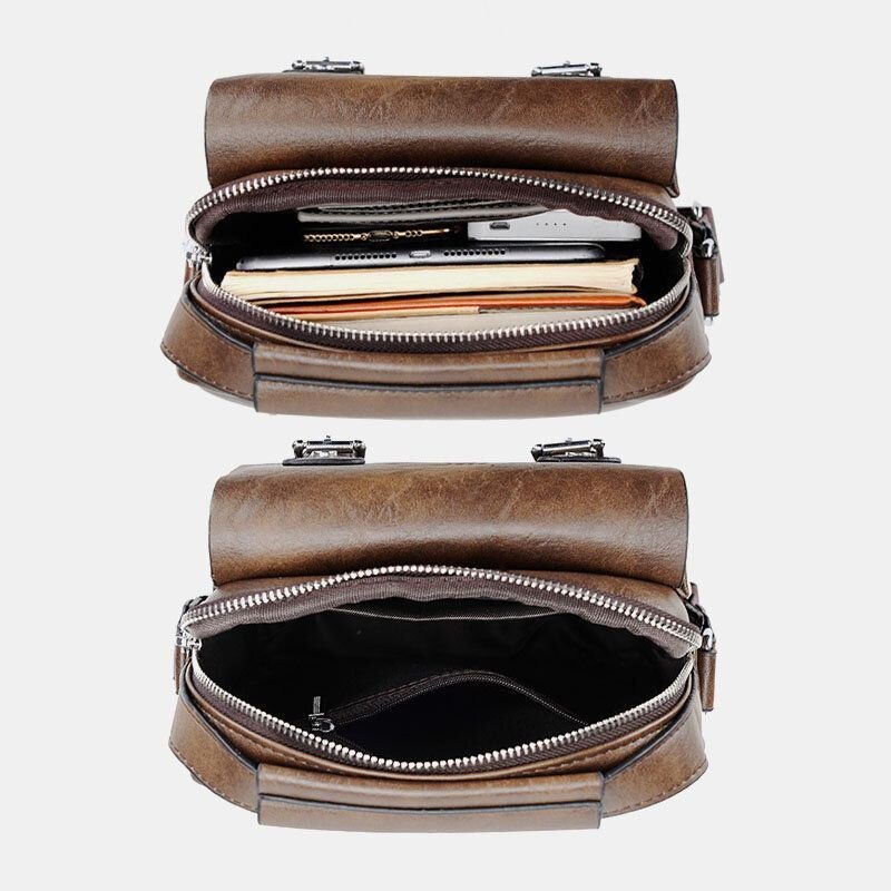 Herre Imitert Skinn Casual Vanntett Slitebestandig Ensfarget Business Crossbody-veske