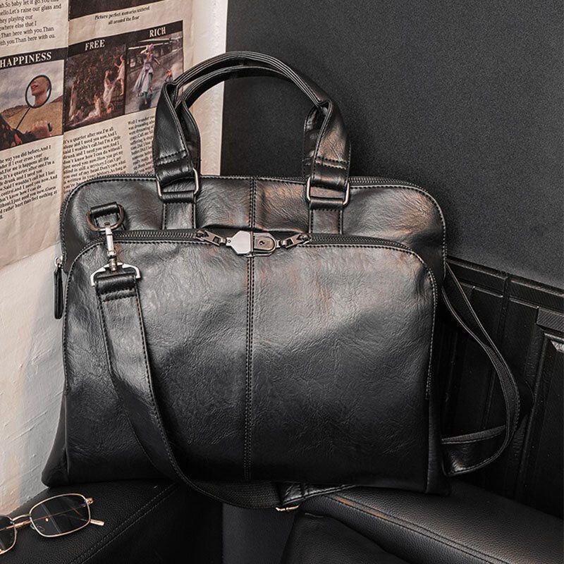 Herre Imitert Skinn Uformelt Ensfarget Håndveske Med Stor Kapasitet.