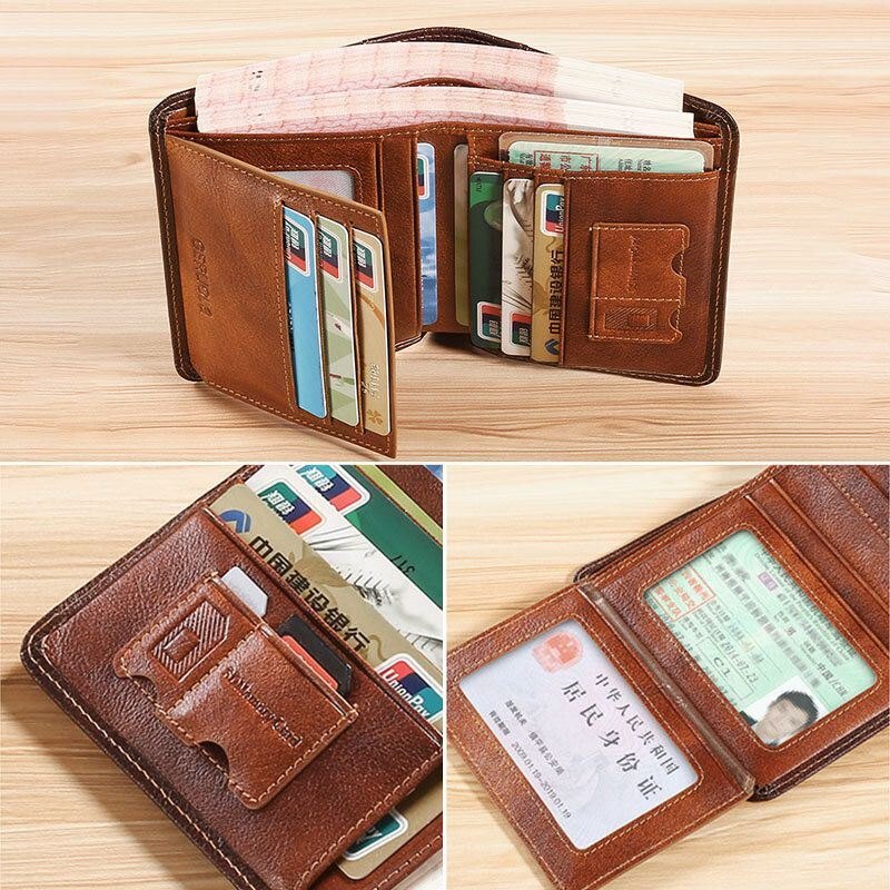 Herre Kort Ultra-tynn Førstelags Okseskinn Anti-magnetisk Lommebok Retro Multi-card Slot Kortholder Myntpung