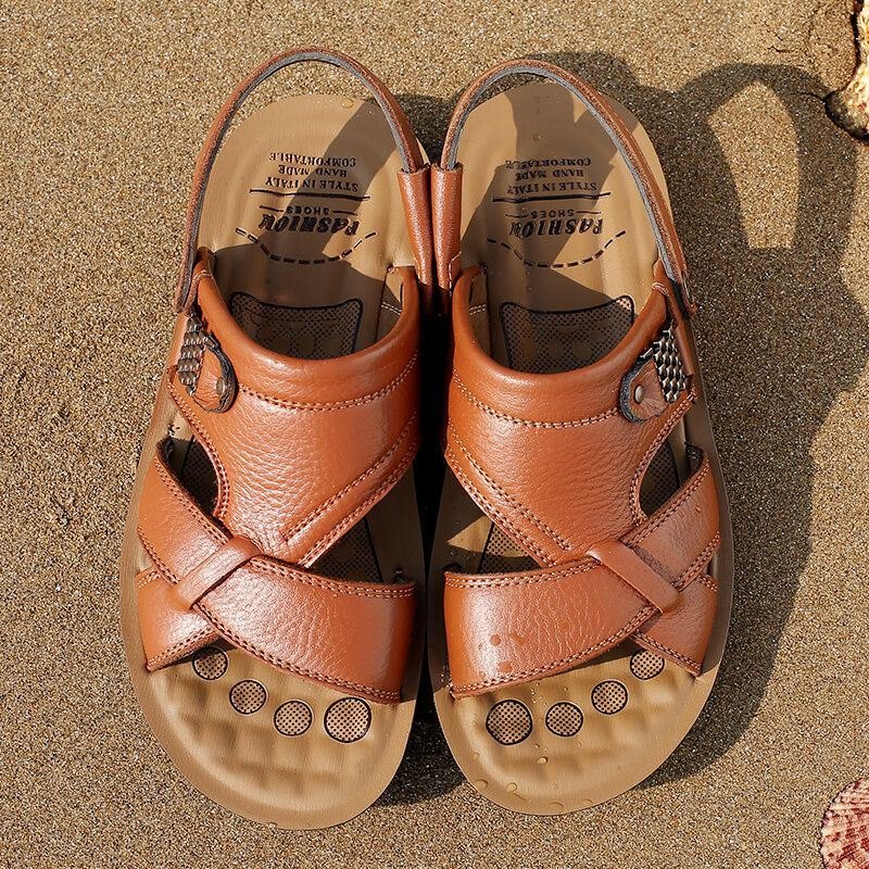 Herre Kuskinn Åpnet Tå Sklisikker Toveis Strand Uformelle Utendørs Sandaler
