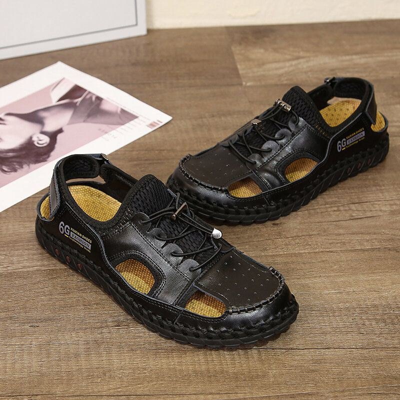 Herre Kuskinn Med Lukket Tå Sklisikker Myke Uformelle Strandsandaler
