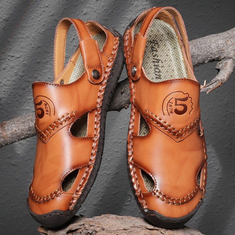 Herre Kuskinn Pustende Håndsøm Myk Bunn Behagelige Utendørs Uformelle Sandaler