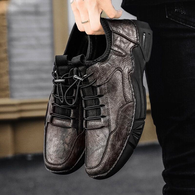 Herre Kuskinn Pustende Myk Såle Håndlaget Ren Farge Elastiske Lisser Fritidssko
