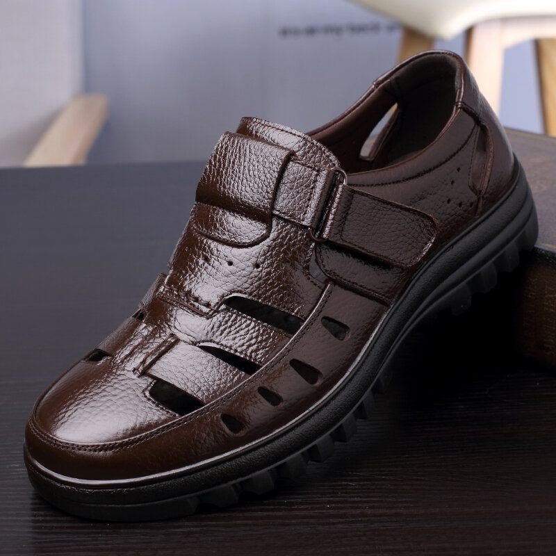 Herre Kuskinn Pustende Uthult Sklisikker Myk Tykk Bunn Lukket Tå Casual Skinnsandaler