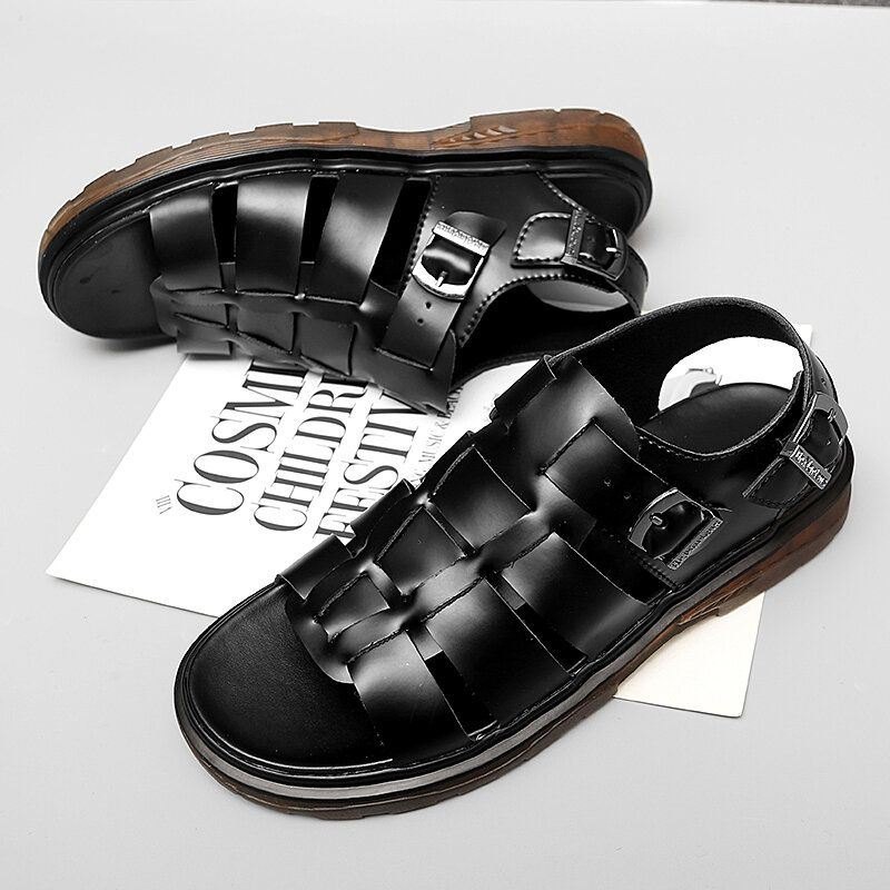 Herre Kuskinn Pustende Vevd Myk Bunn Sklisikker Åpen Tå Uformelle Sandaler