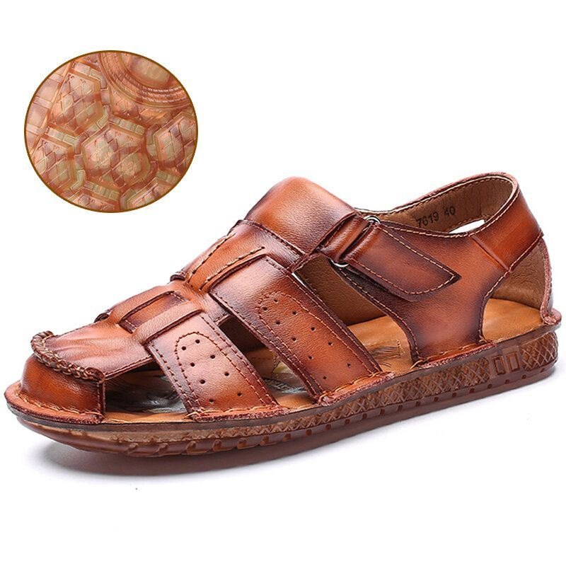 Herre Kuskinn Sklisikker Myk Såle Krokløkke Lukket Tå Uformelle Sandaler