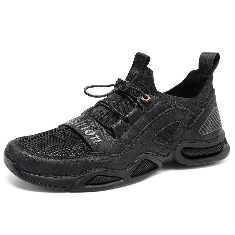 Herre Lær Pustende Mesh Komfortabelt Stoff Myk Bunn Elastisk Bånd Uformelle Sportssko