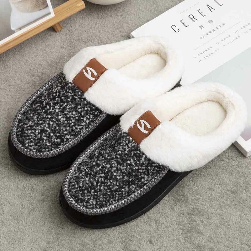 Herre Lammeull Myk Såle Sklisikker Pluss Velvet Thicken Vinter Varm Hjemmebomullstøfler