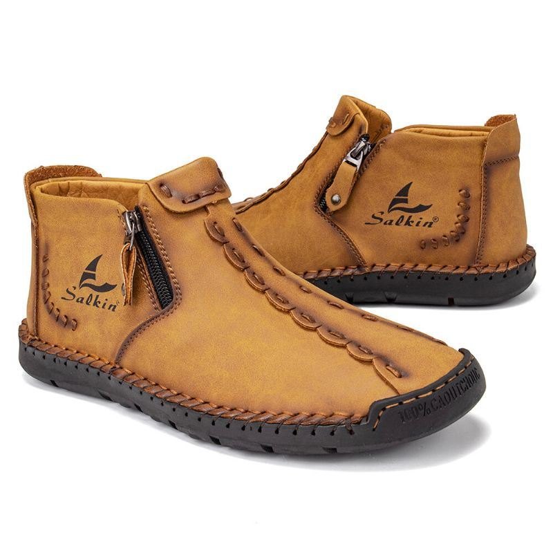 Herre Microfiber Lær Håndsøm Ankelstøvler Med Glidelås I Siden