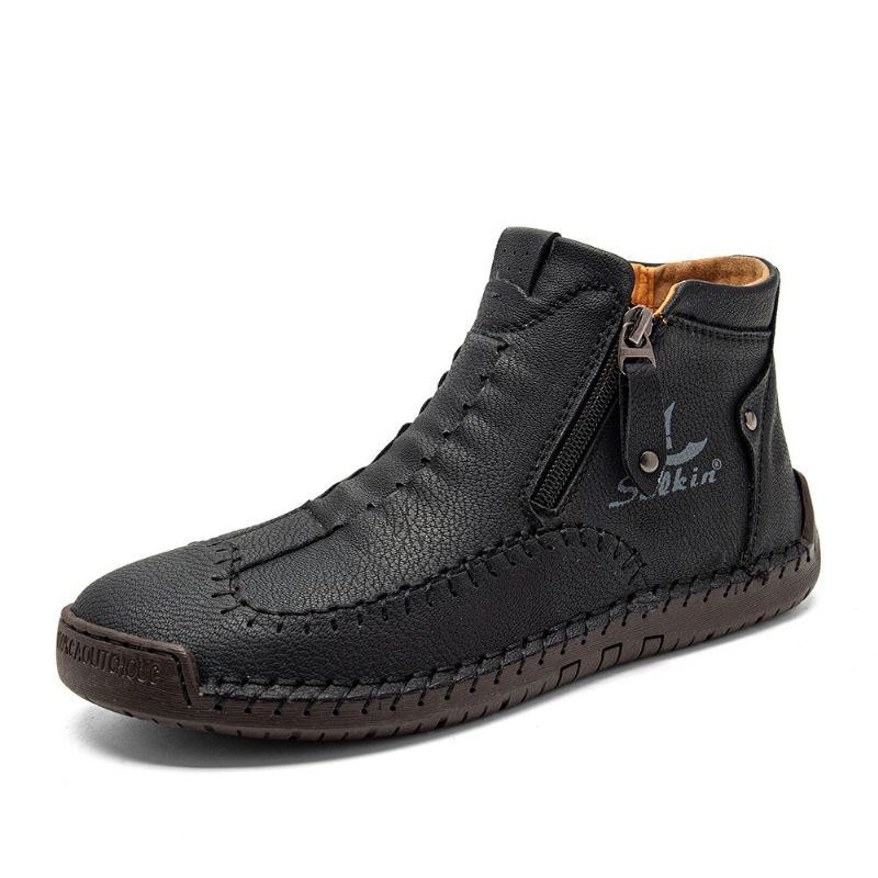 Herre Mikrofiber Lær Håndsøm Myk Såle Brie Ren Farge Glidelås Fritidssko