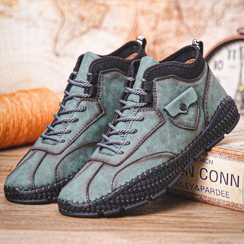 Herre Mikrofiberskinn Pustende Håndsøm Myk Krokodillekornsåle Snøre Fritidssko