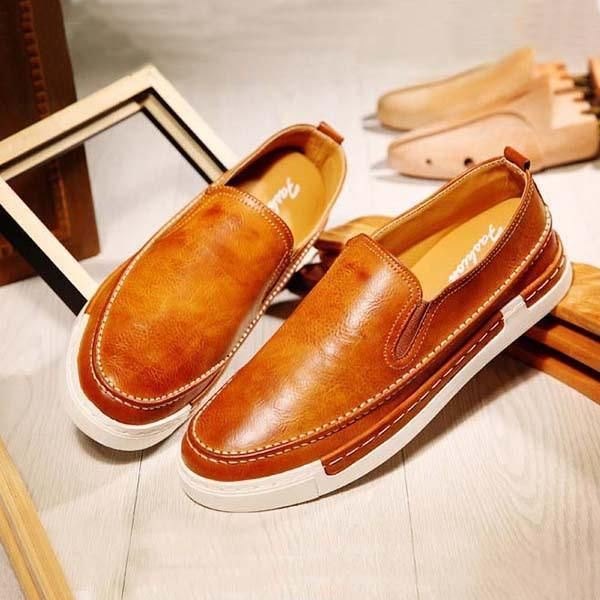Herre Mote Sko Pu Rund Toe Slip On Outdoor Sneakers Vintage Style