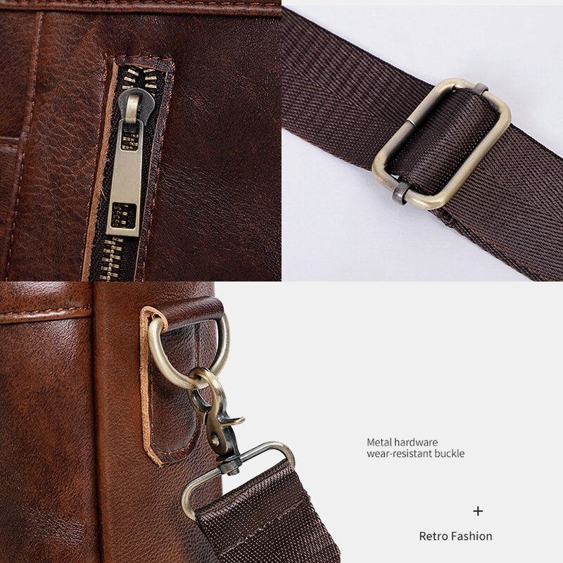 Herre Multifunksjon Ekte Skinn 15.6 Tommers Bærbar Pc-veske Kofferter Retro Multi-lomme Crossbody Bag Skulderveske