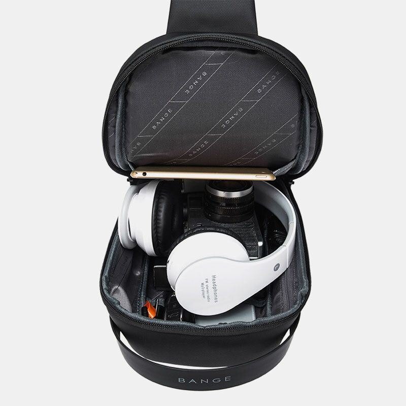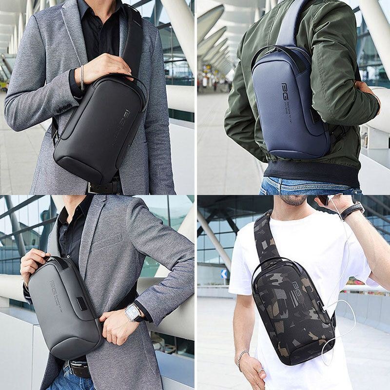 Herre Oxford Cloth Multi-bær Uformell Ensfarget Business Skulderveske Brystveske Med Usb-lading