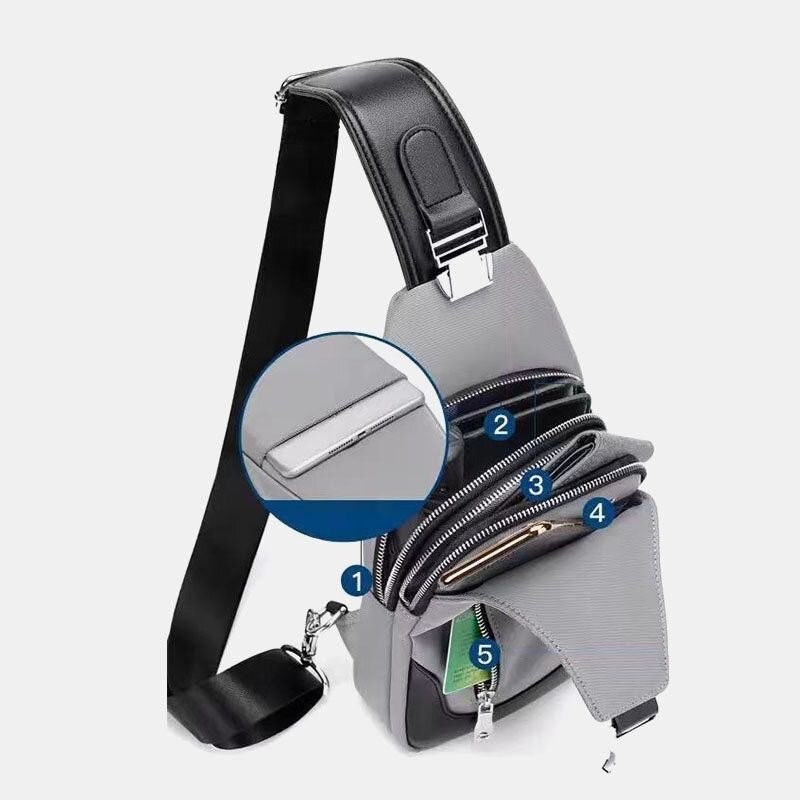 Herre Oxford Vanntett Slitebestandig Multifunksjon Brystveske Usb Lading Multilomme Crossbody Skulderveske