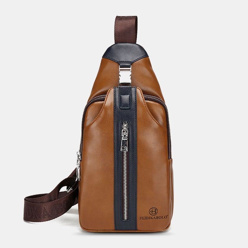 Herre Pu Lær Multi-lomme Stor Kapasitet Vanntett Sport Brystvesker Crossbody Bag Skulder