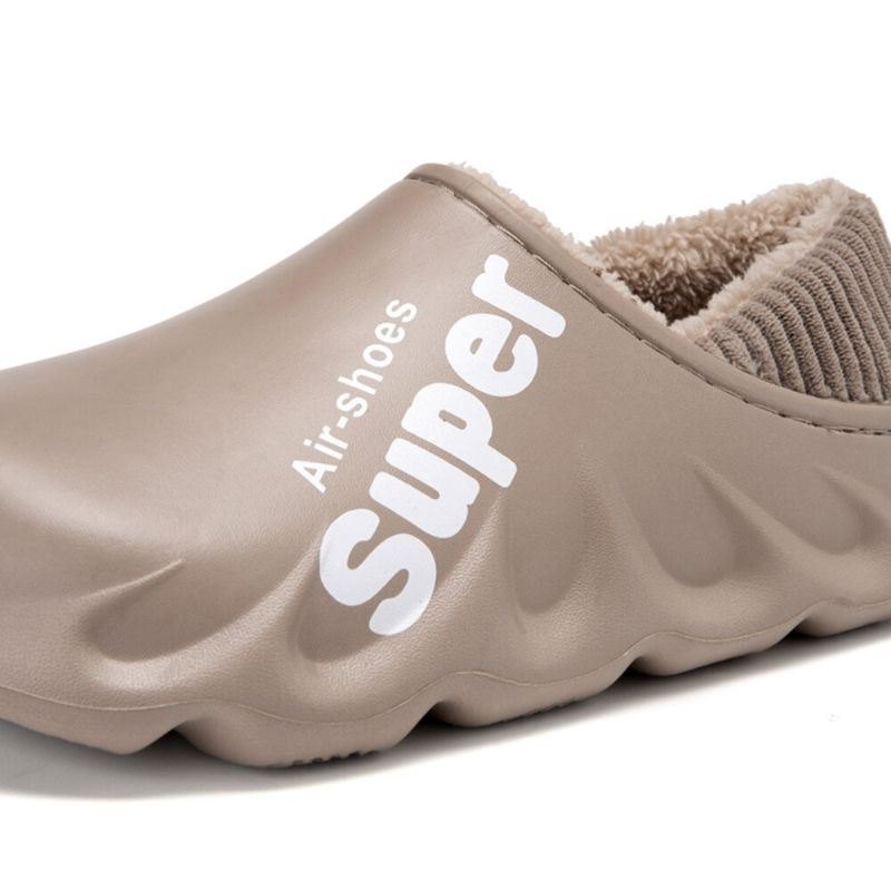 Herre Pu Lær Vanntett Sklisikker Elastisk Sko Munn Design Myk Varm Hjem Bomulls Tøfler