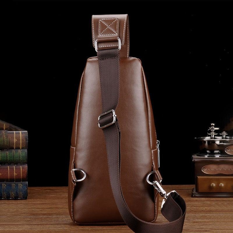 Herre Pu Leather Casual Multifunksjon Øretelefon Hull Crossbody Bag Brystveske