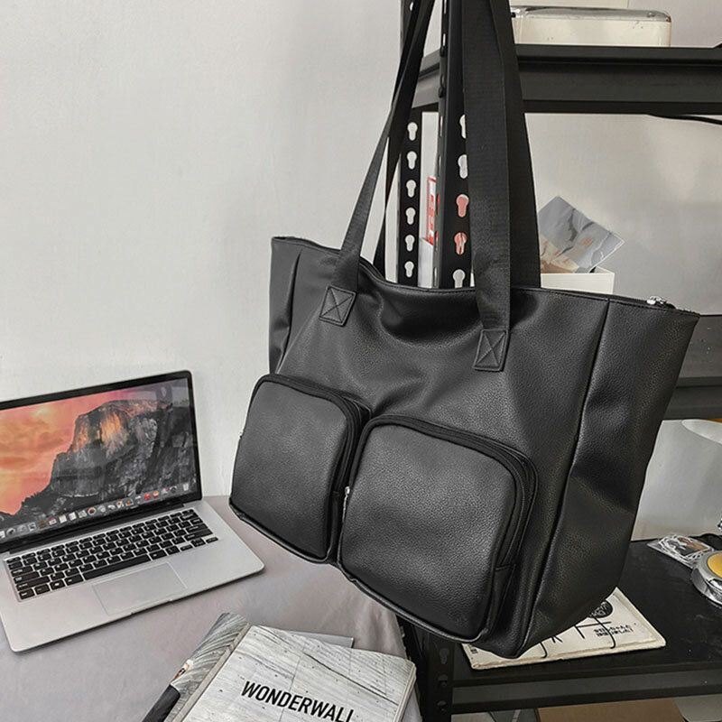 Herre Pu Leather Latge Kapasitet Multi-pocket Crossbody Bag Skulderveske Håndveske