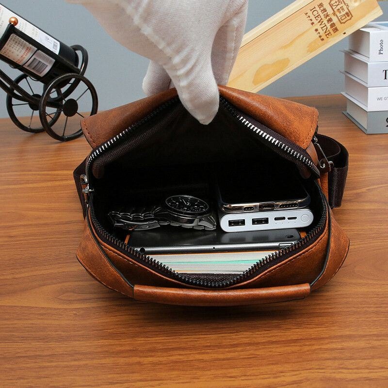 Herre Pu Skinn Vintage Tekstur Stor Kapasitet Glidelås Dekor Crossbody Bag Skulderveske Håndveske