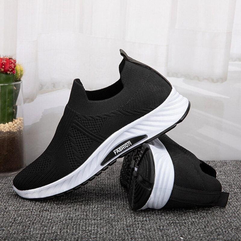 Herre Pustende Stoff Myk Såle Slip On Pure Color Comfy Sports Casual Walking Sko