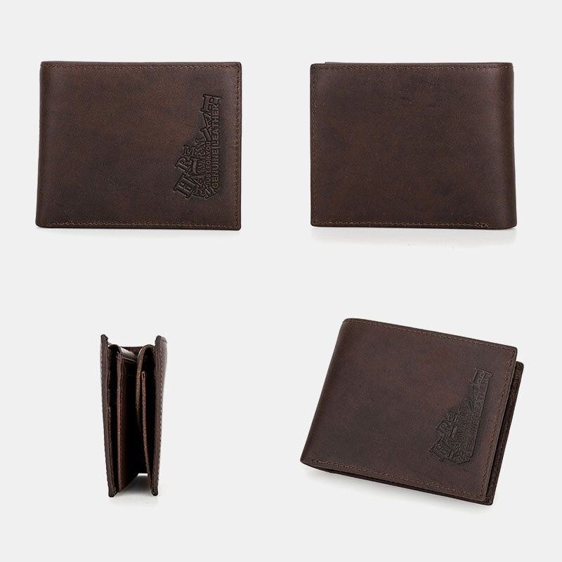 Herre Retro Anti-magnetisk 8-kortsspor Kortetui Multifunksjon Kort Bifold Kuskinn Lommebøker Pengeklemme
