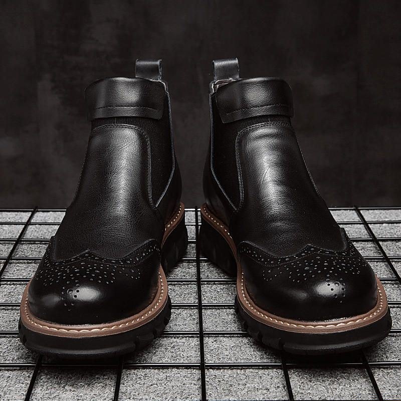 Herre Retro Soft Classic Brogue Leather Chelsea Ankel Boots
