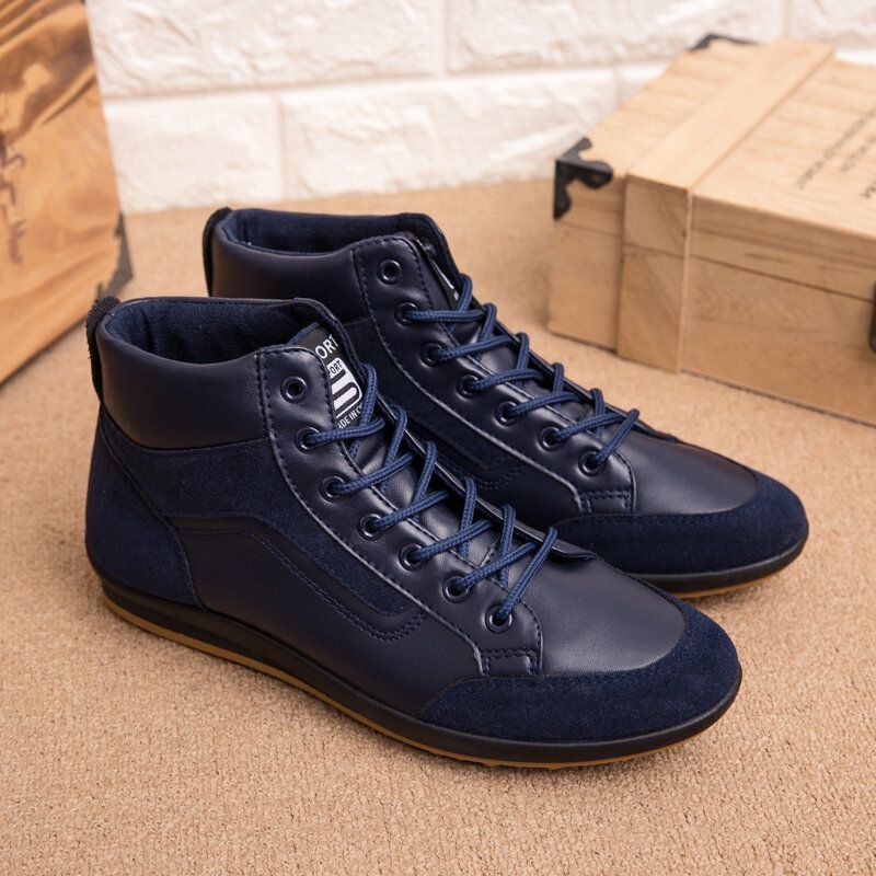 Herre Skinn Myk Såle Sklisikker Snøring Retro England-stil Uformelt Mid-leggesko